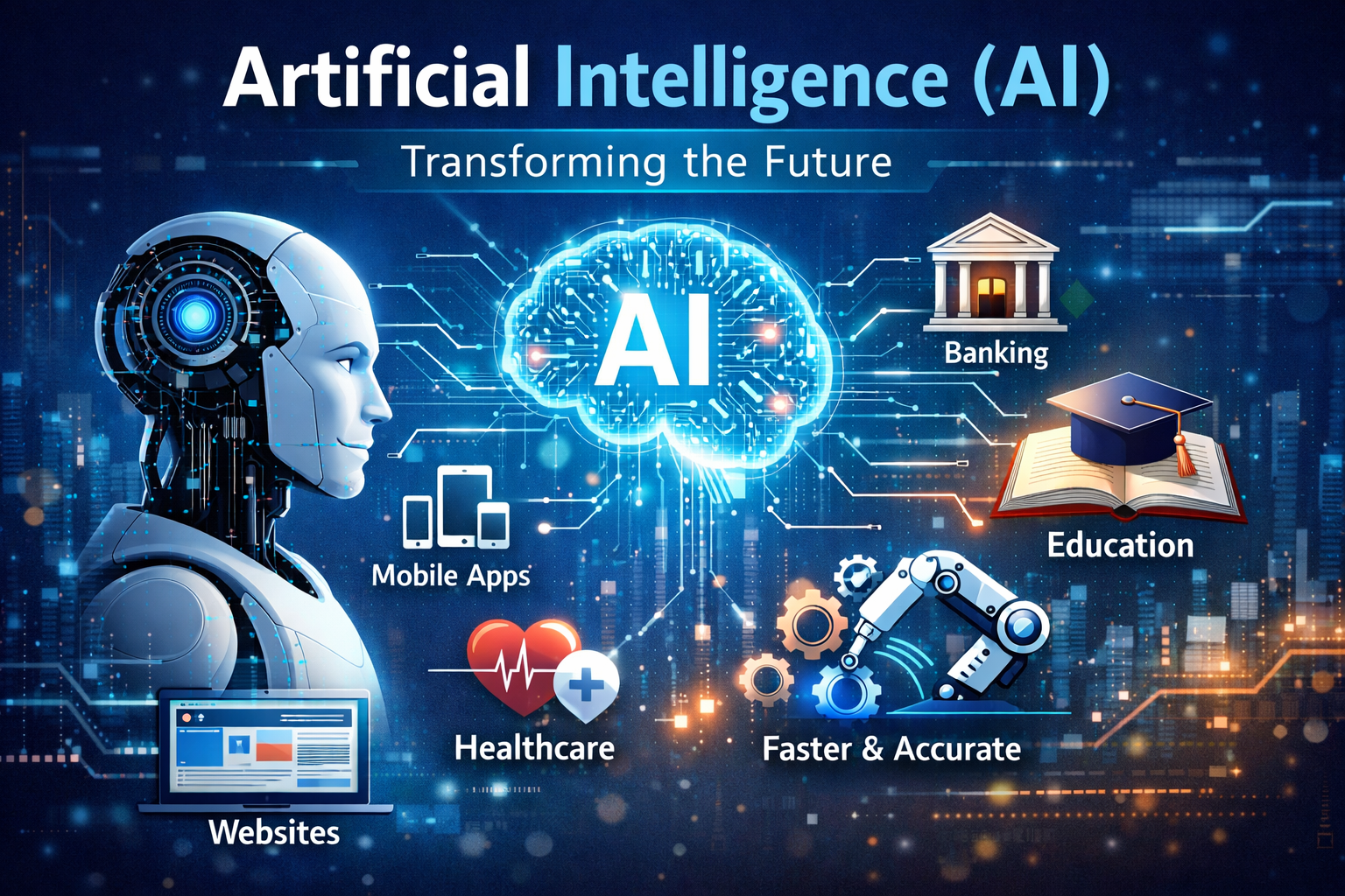 Artificial Intelligence (AI) is a technology that allows machines to think and learn like humans. AI is used in many areas such as mobile apps, websites, healthcare, banking, and education. It helps complete tasks faster and more accurately.